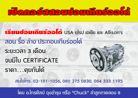 อู่ซ่อมเกียร์ออโต้ สาขา ลำลูกกา คลอง 8 โทร. 02-191-1056, 080-275-0830, 084-333-1195